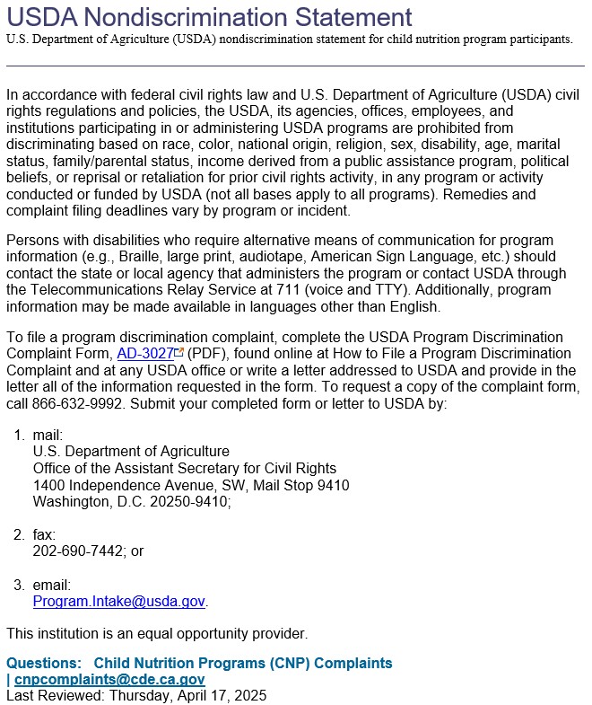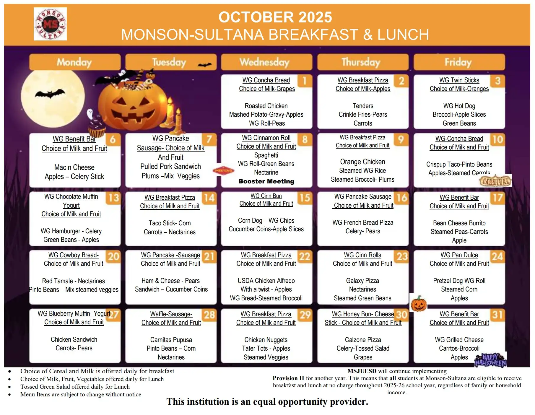 Monson-Sultana JUESD currently provides student meals under the National School Breakfast and National School Lunch, Child and Adult Care Food, and Summer Nutrition Services Program at no charge for the